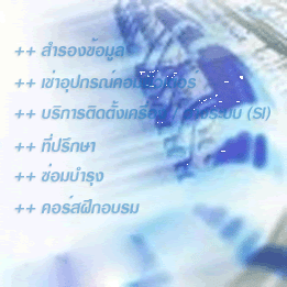 ให้คำปรึกษาในการนำคอมพิวเตอร์เข้ามาใช้ในองค์กร ให้คำปรึกษาในออกแบบ ติดตั้งและใช้งานINTERNET ให้คำปรึกษาการออกแบบและวางระบบงาน